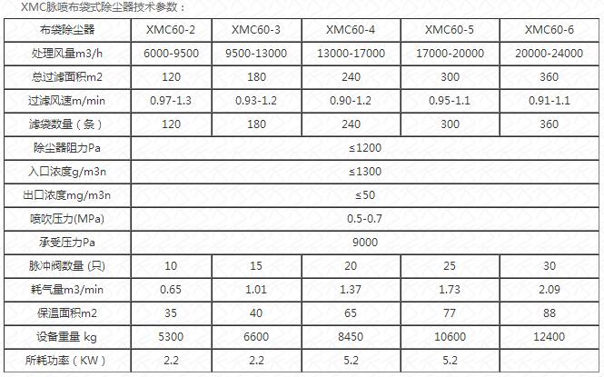 新疆布袋除塵器XMC型選型的主要技術參數介紹